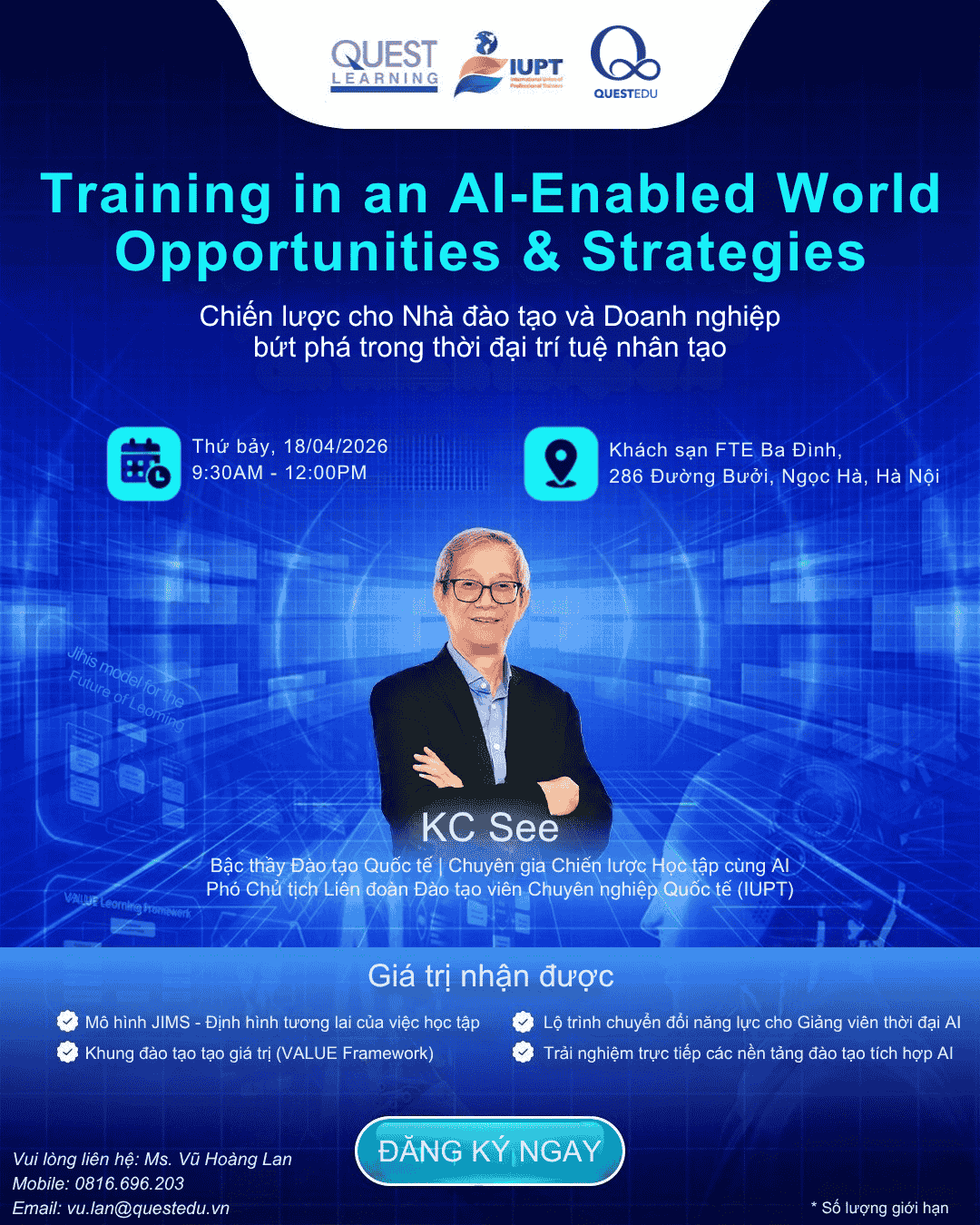 Hãy để QUESTEDU đồng hành cùng bạn trên hành trình nâng cao năng lực và phát triển bền vững! Đăng ký ngay hôm nay để nhận những chương trình đào tạo thiết thực, hiệu quả, phù hợp với nhu cầu của bạn và doanh nghiệp.